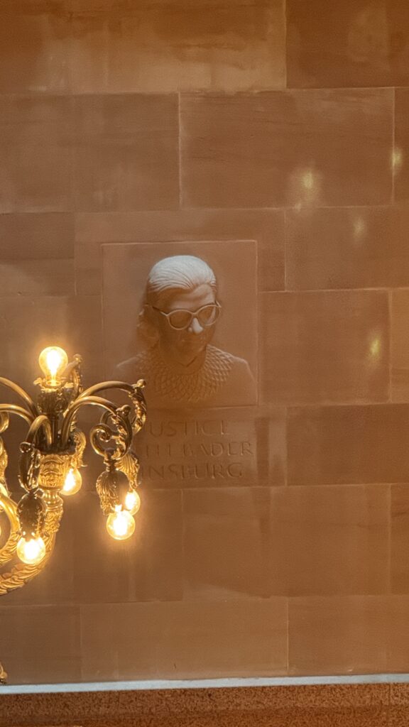 In modern times, a Ruth Bader Ginsburg sculpture was unveiled on the walls of the Capitol’s Great Western Staircase, increasing the total to 78 famous faces. The Supreme Court Justice and Brooklyn native is the first person to be added to the staircase in over 100 years.