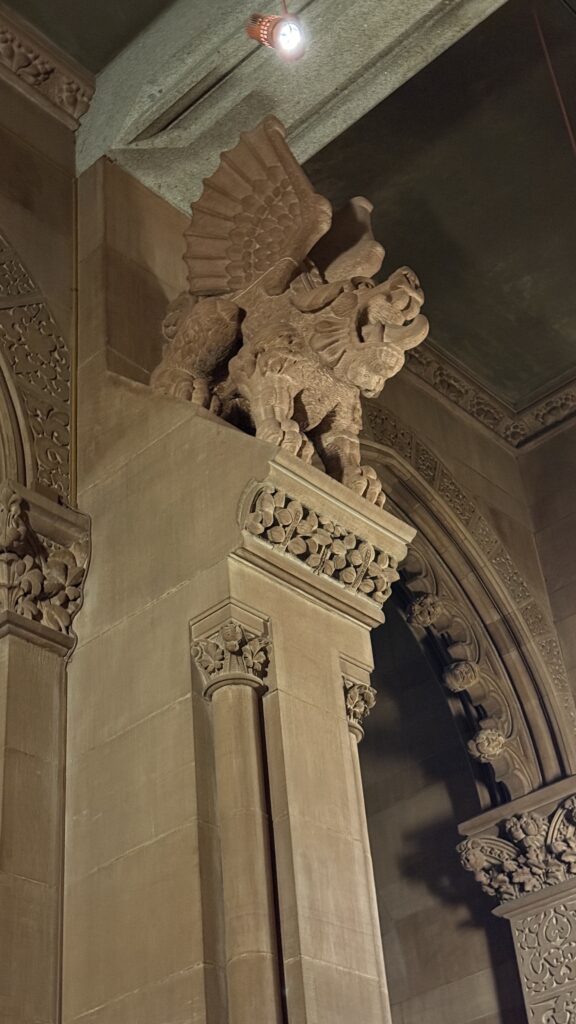 Haunted? Many people think so. They even host haunted tours to “prove” it. The building was designed to look like a castle from the middle ages, with carvings of grotesques, The Green Man, and even a demon that is said to have placed a curse on the building. Perhaps the nature of the carvings lead people to believe it is haunted. Or, it could be due to the apparitions and sounds of chains frequently seen and heard by guests and staff.