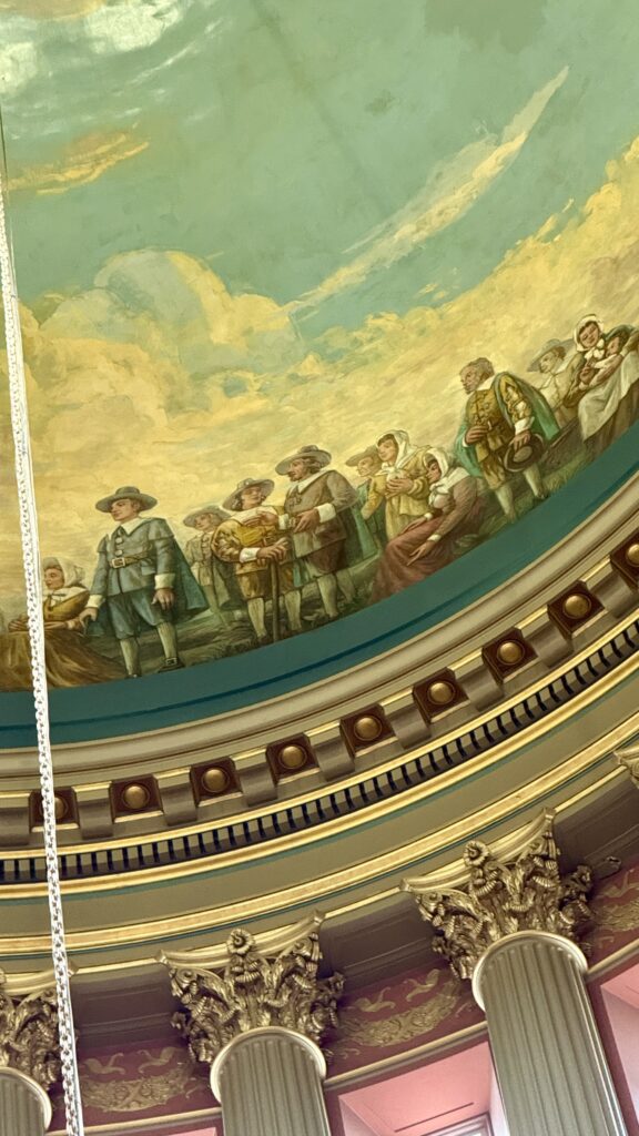 Not only is it opulent, the Rhode Island State House upped their game for visitors compared to some of the other New England States. They have a slick, trifold color brochure, from where much of this information was obtained. The first floor houses The Charter Museum, where they recommended we start our self-guided tour (they weren’t offering guided tours the day we went).
