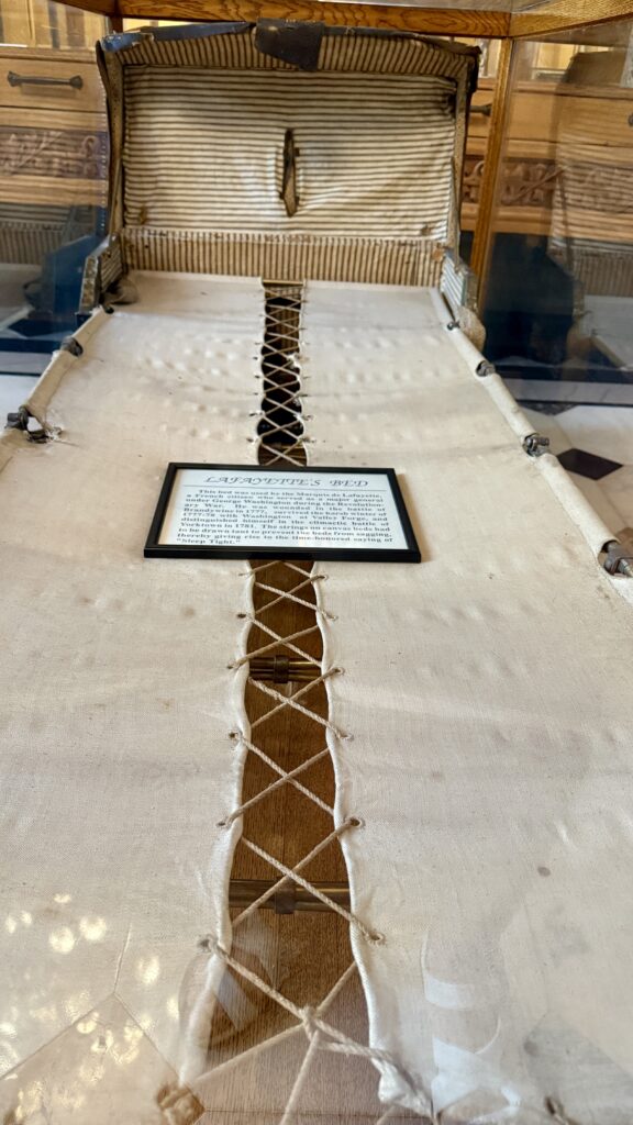 This room was impressive! The museum has on display the original document signed by King Charles II, the Royal Charter of 1663. By the 1650s, Rhode Island’s diverse communities came together to affirm and formalize a shared commitment to religious freedom and democracy. Residents sent a delegation to London to obtain a charter to ensure their rights. It’s challenging to read, with the calligraphy and old English, but quite amazing to witness in person.