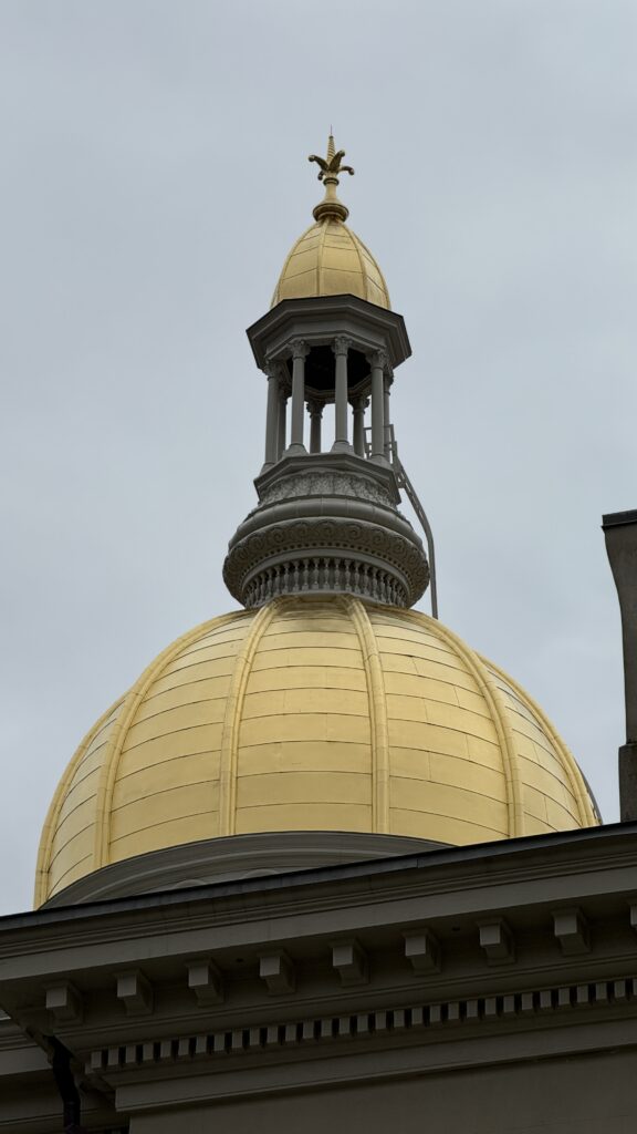 In 1996, the New Jersey State House began renovations of its golden dome. That project wasn’t completed until 1999, but was no simple job. The dome is covered with 48,000 pieces of gold leaf.