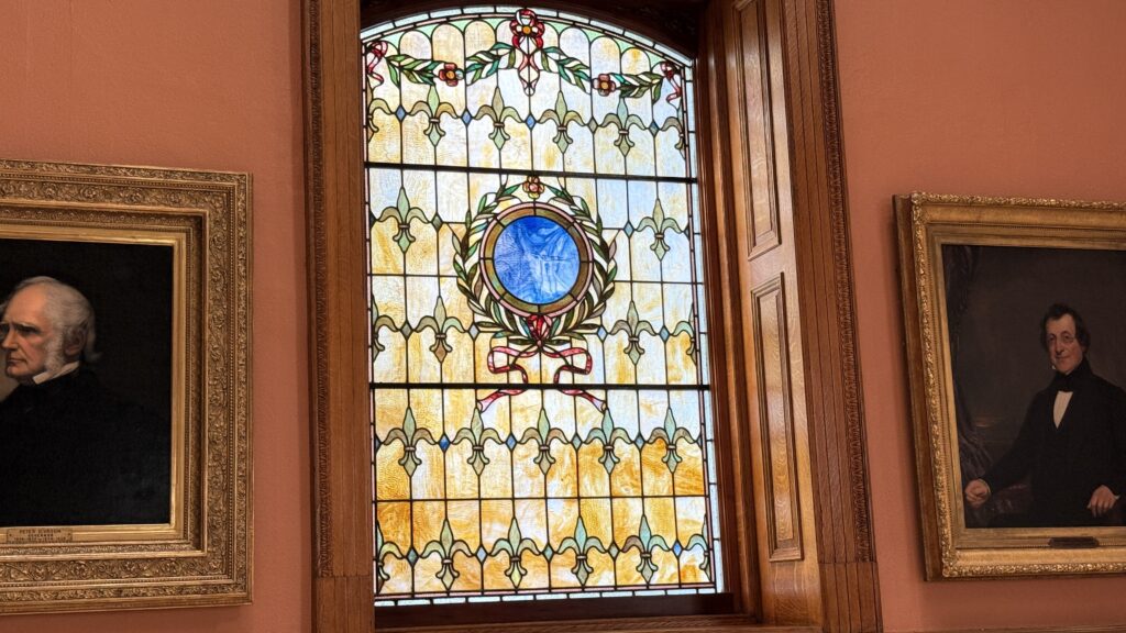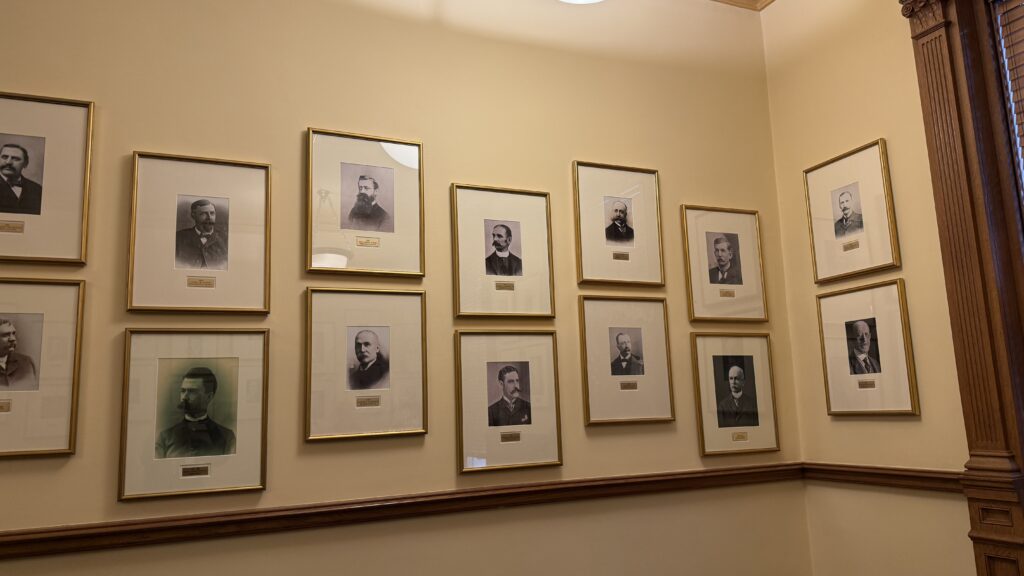 According to our tour guide, younger visitors have pegged this hall the “Room of Epic Mustaches.” Zoom in if you mustache yourself why. 😂 These are portraits of the Speakers of the House. There are 80 assembly members for 40 voting districts.