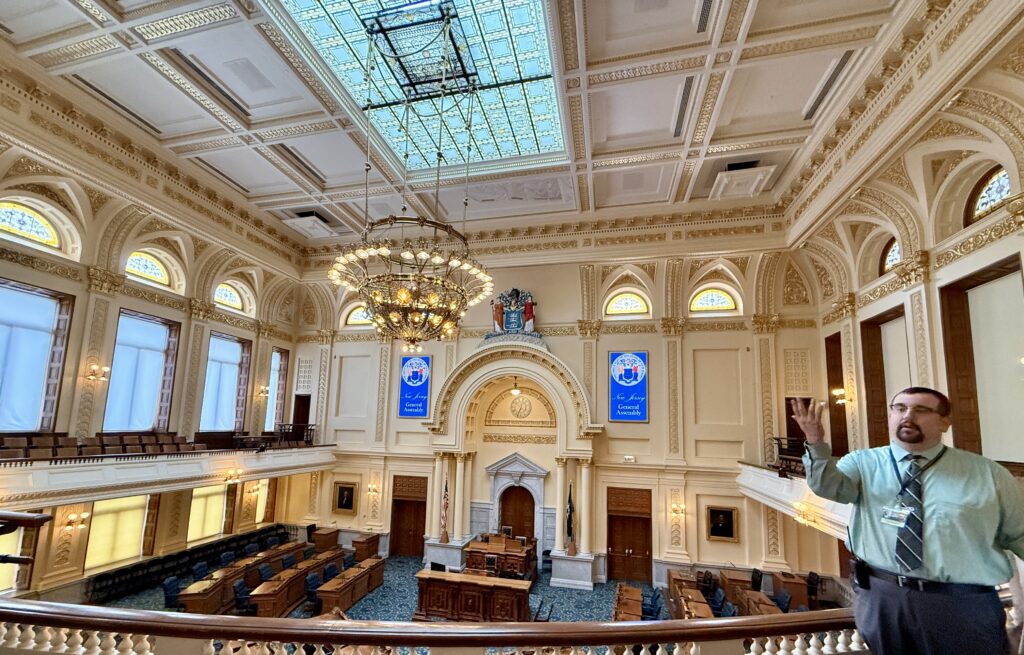 Our guide was incredibly knowledgeable and shared plenty of interesting tidbits throughout the tour. Here’s another fun fact: New Jersey’s capitol is the only one in the country where you can look out and see another state. From the building, you can gaze across the Delaware River and spot Pennsylvania.