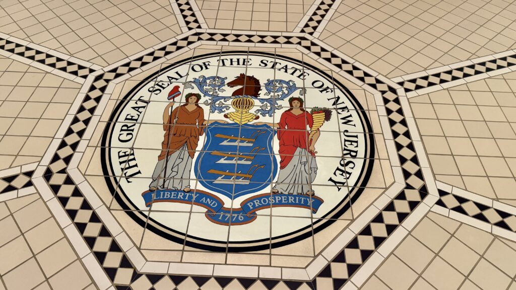 Look up and you’ll see stained glass lunettes and a huge skylight, letting sunlight pour in across the hall. The gold-leaf details shimmer over the ornate plasterwork, giving the place a touch of grandeur. Above the Speaker’s dais, there’s a colorful wooden statue of New Jersey’s great seal—hard to miss and impossible not to admire.