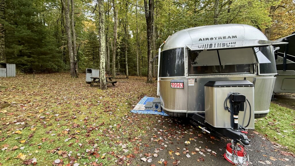 But first, let me show you where we stayed. We parked our rig in Beckley, WV, at the Coal Miner’s Exhibition. This was the first time our truck and trailer slid backwards while trying to get into a campground. It was a very steep hill, covered in wet leaves. Not a good combination! But we finally got into our very tight spot after using 4WD, and set out to enjoy the surrounding area. We were sweating bullets for that one.