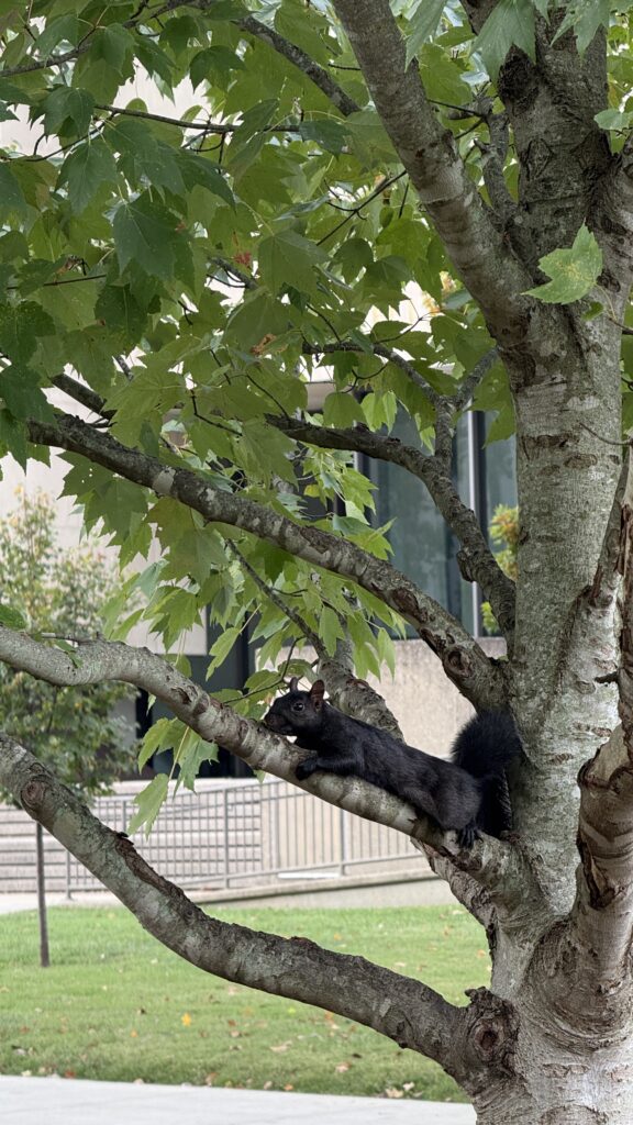 Speaking of rare sights, meet the melanistic eastern gray squirrel—splooting right in front of us! Only about 1% of these squirrels are melanistic, so seeing one up close at the Capitol was a treat. Apparently, they’re local celebrities here.